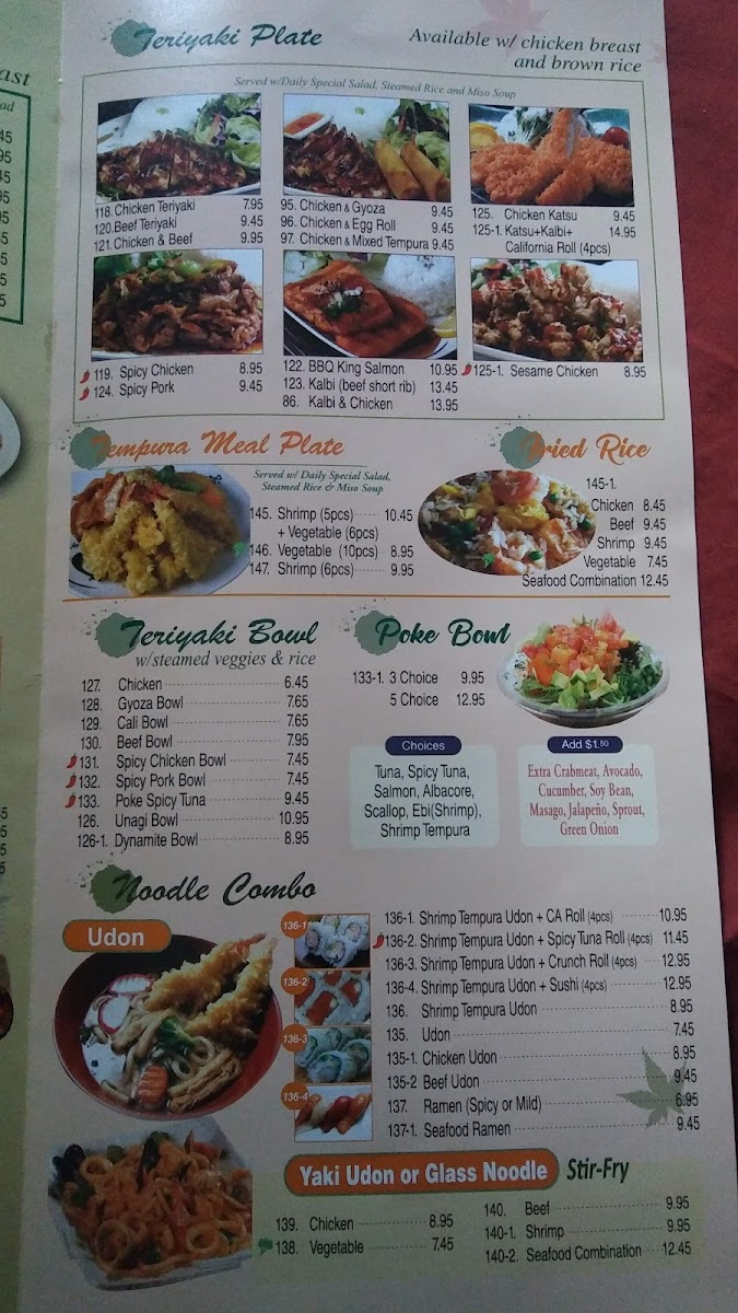 The Teriyaki Plates are a must-try, featuring a choice of succulent salmon, chicken, or beef, each served with white rice, a small salad, and comforting miso soup. Highlights include the Salmon Teriyaki Plate, priced at $18.45, and the Chicken Teriyaki Plate, at $16.95. For those craving both sushi and traditional fare, the Combo Plates provide an excellent selection of flavorful sushi and gyoza.