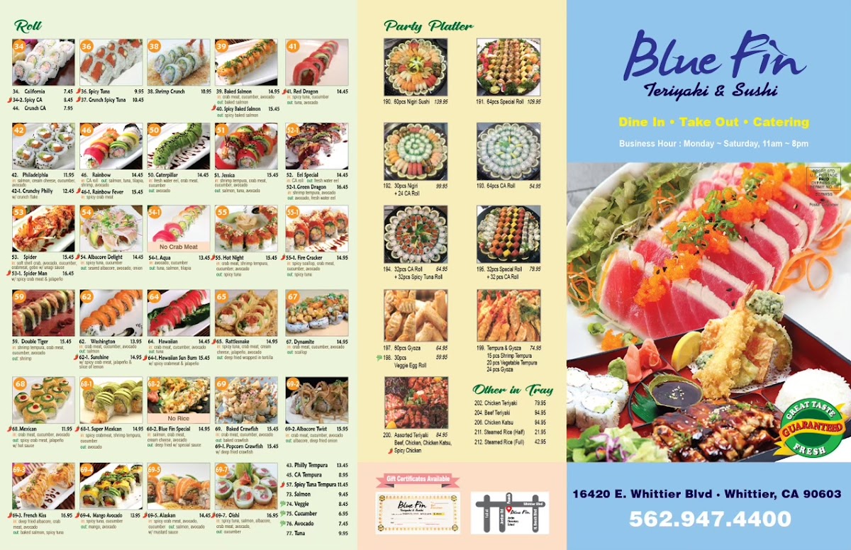 Welcome to Bluefin Sushi & Teriyaki, a culinary gem located in Whittier, CA, where the art of Japanese dining meets exceptional hospitality. This restaurant excels in offering a diverse menu that caters to sushi lovers and teriyaki enthusiasts alike.